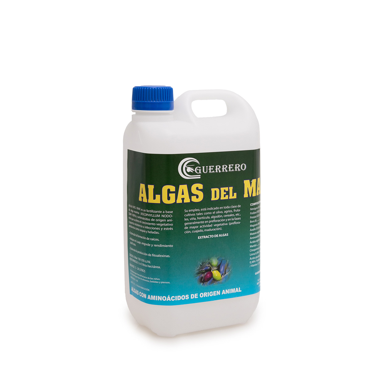 Algas del Mar es un bioestimulante líquido formulado con extracto puro de Ascophyllum nodosum (100%) y aminoácidos de origen animal.
